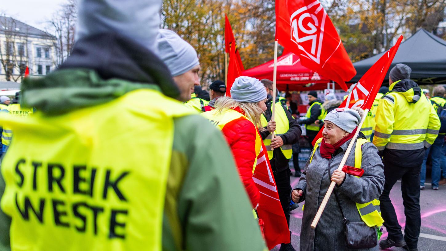 Employees in the metal and electrical industry are demanding eight percent more money and there is a strike in Nuremberg. Die IG Metall vertritt als Gewerkschaft die Beschäftigten der Branchen Metall Elektro Eisen Stahl Textil Bekleidung ITK Handwerk sowie Holz Kunststoff.